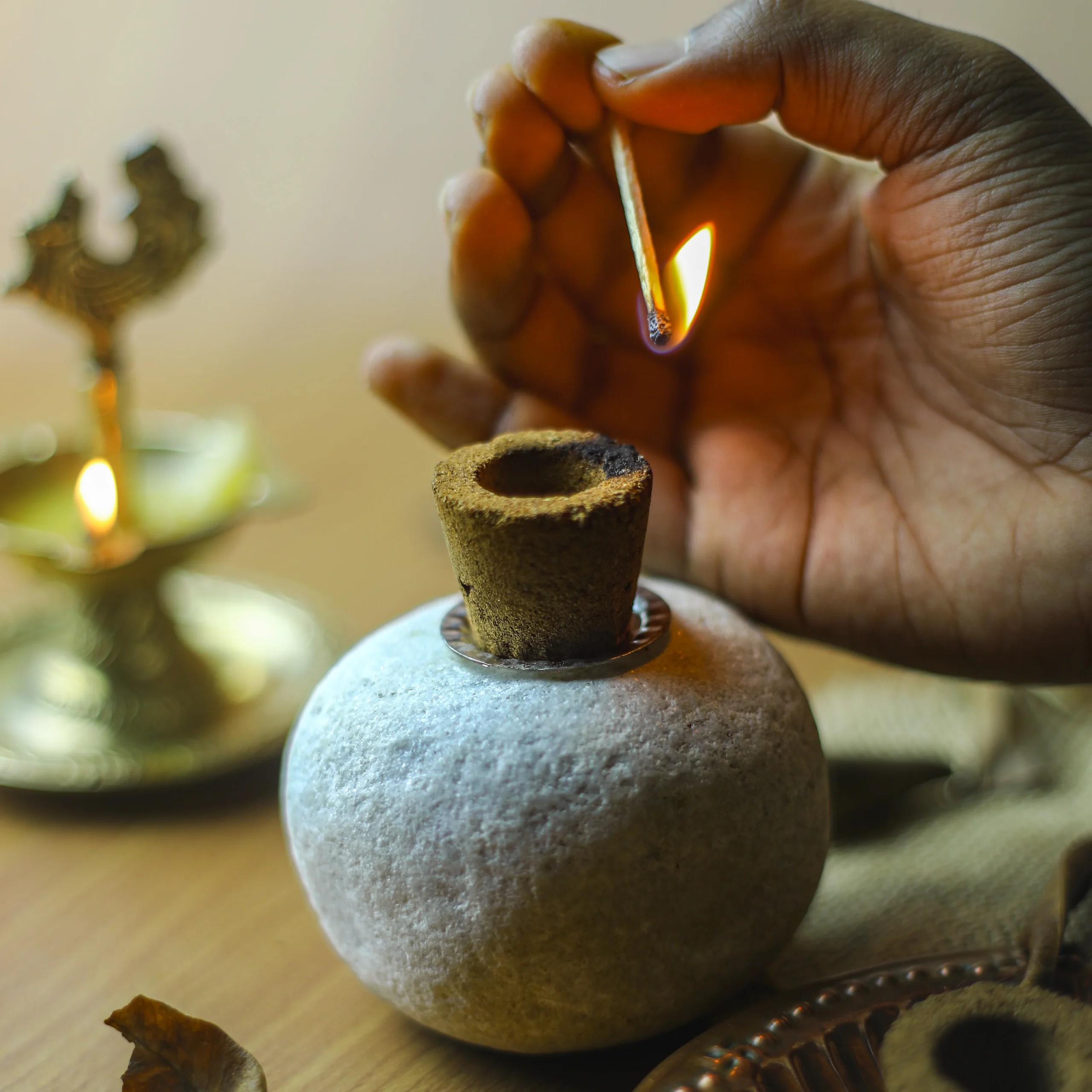 REMEMBER: The holder will be very hot for up to 20-25 minutes after the havan cup has turned to ash. Handle it with care.