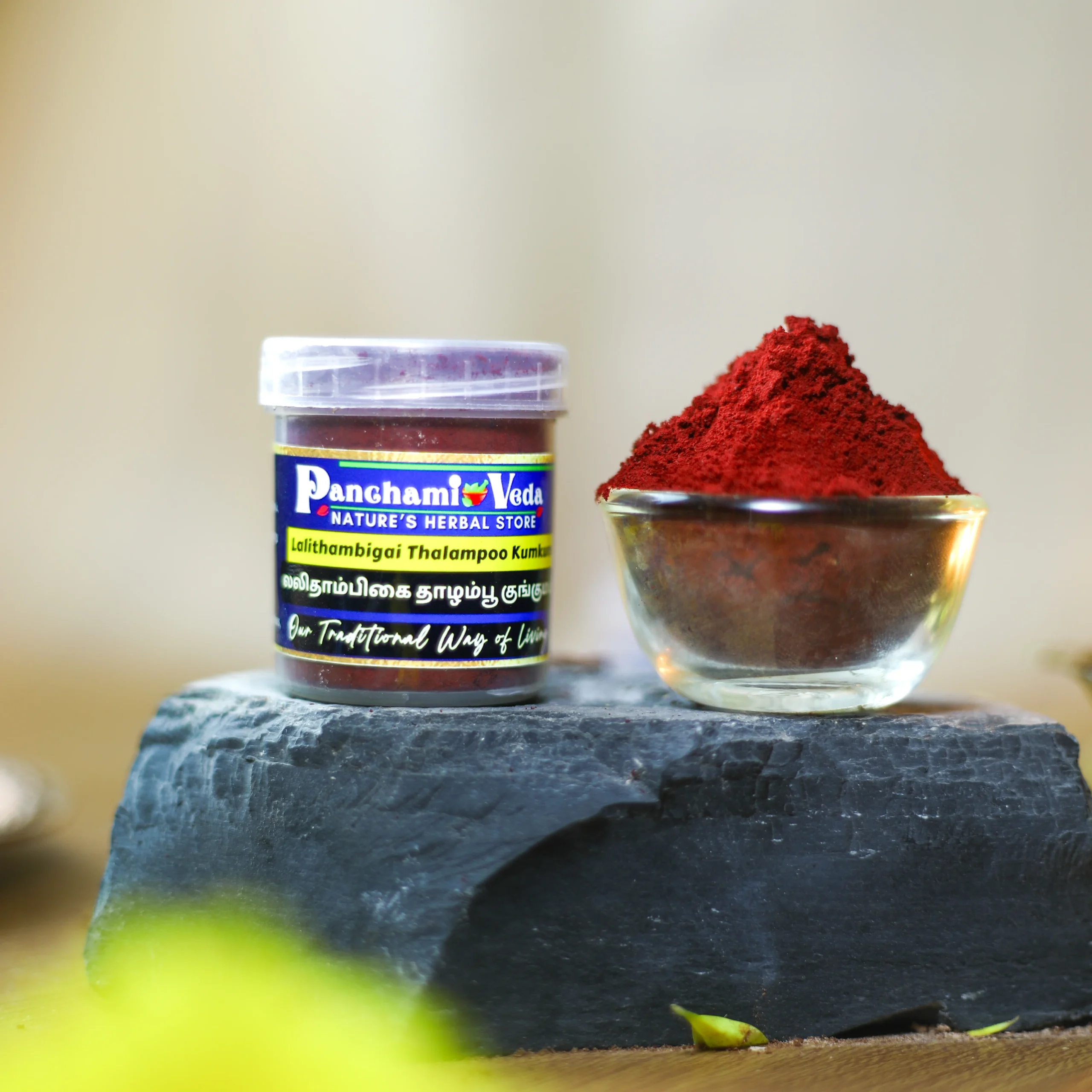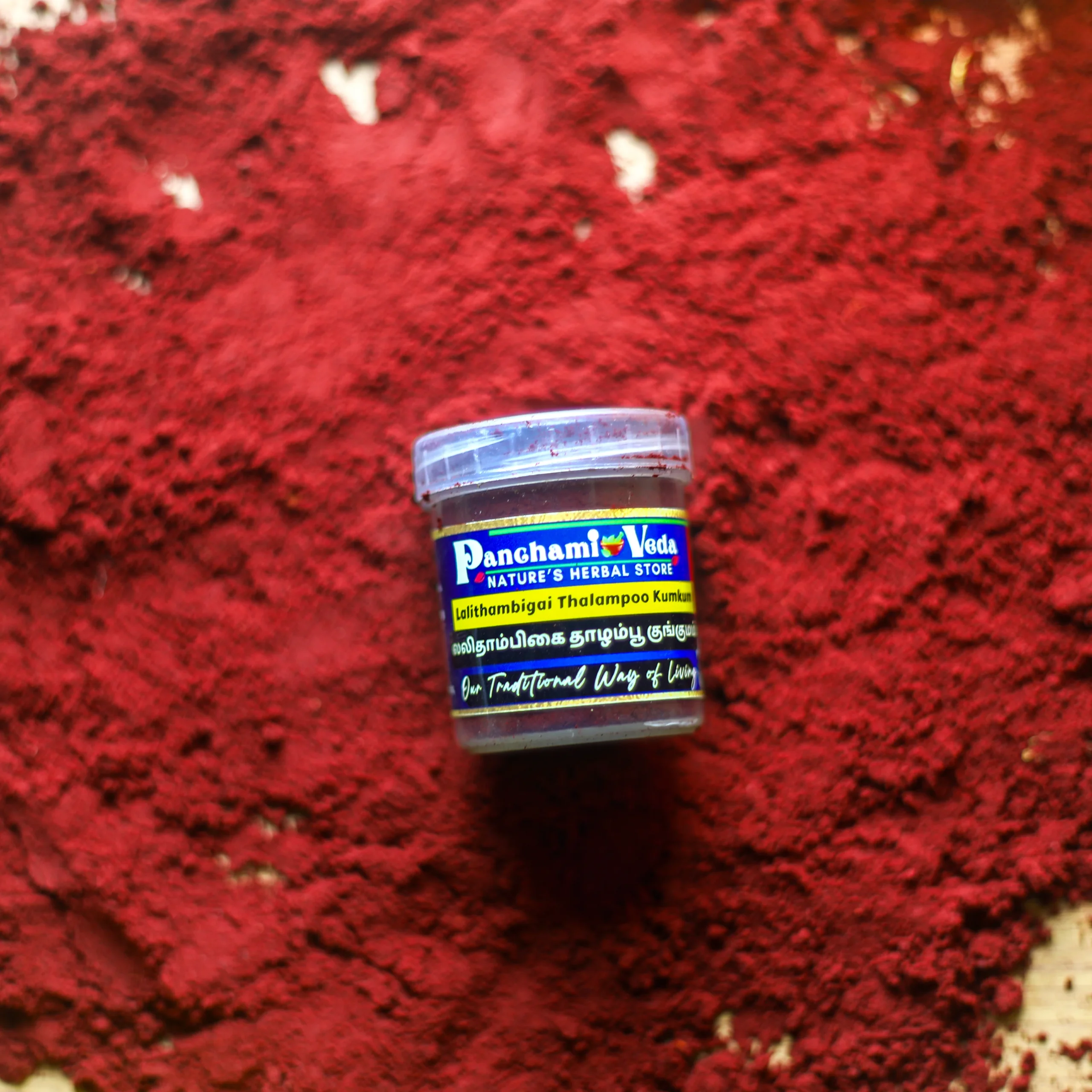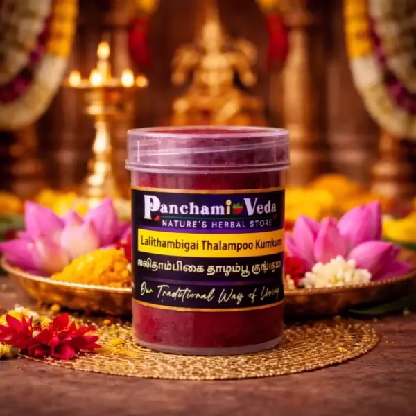 Inspired by the sacred traditions of South Indian temples, Lalithambigai Thalampoo Kumkum by Panchami Veda – Traditional Pooja Products is crafted with devotion and purity.